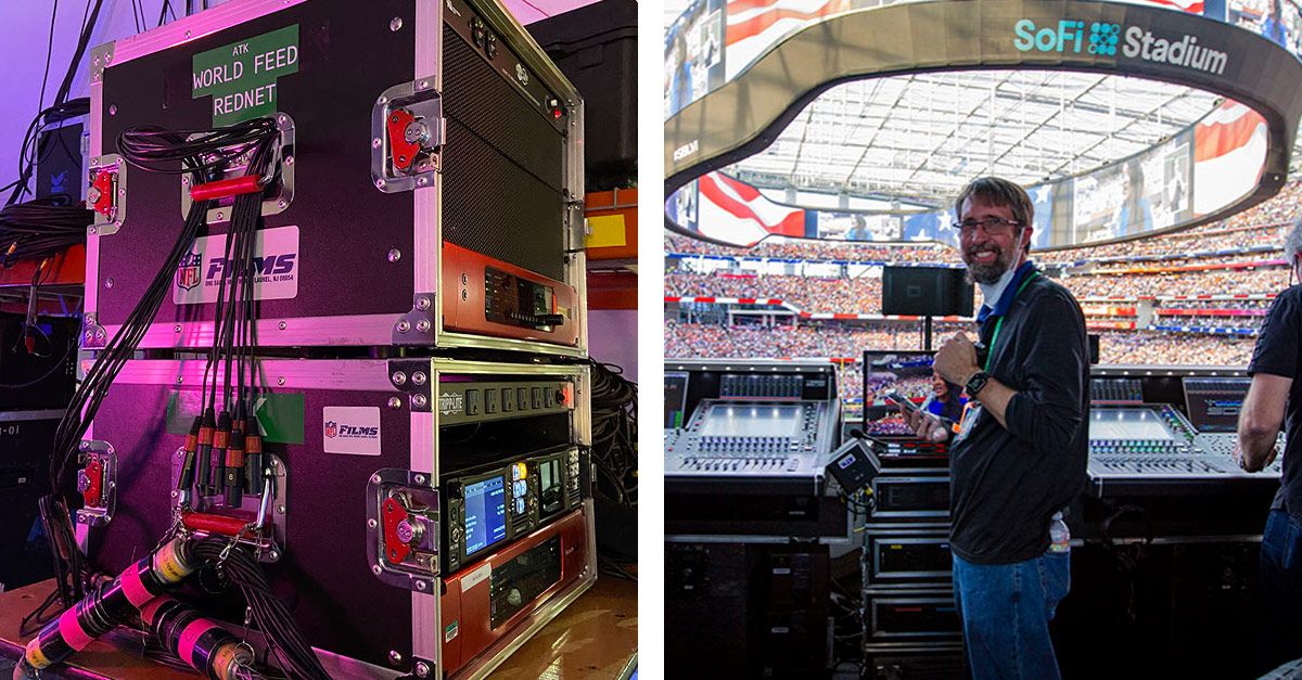 “For the past seven Super Bowls, we've employed RedNet with our Dante Audio-over IP network," stated Kirk Powell, Engineer-in-Charge for ATK/Clair at Super Bowl LVI. “We started using RedNet years ago on a small scale, and then it's just grown and grown year after year. This year was just over the top, because we have to feed signal to so many different entities throughout the stadium, not to mention that we were being fed signal as well, so we've got to have connectivity back and forth. It's all about having strategically placed nodes so you can jump into and out of the RedNet system. We have a huge fiber backbone. We used mostly the SoFi Stadium's fiber, which is very nice because that's one of the big advantages of this venue. This new facility has tons and tons of dark fiber, so we're able to utilize the building infrastructure as opposed to running all of our own fiber. And RedNet is the key component that gives us that interconnectivity and flexibility."
