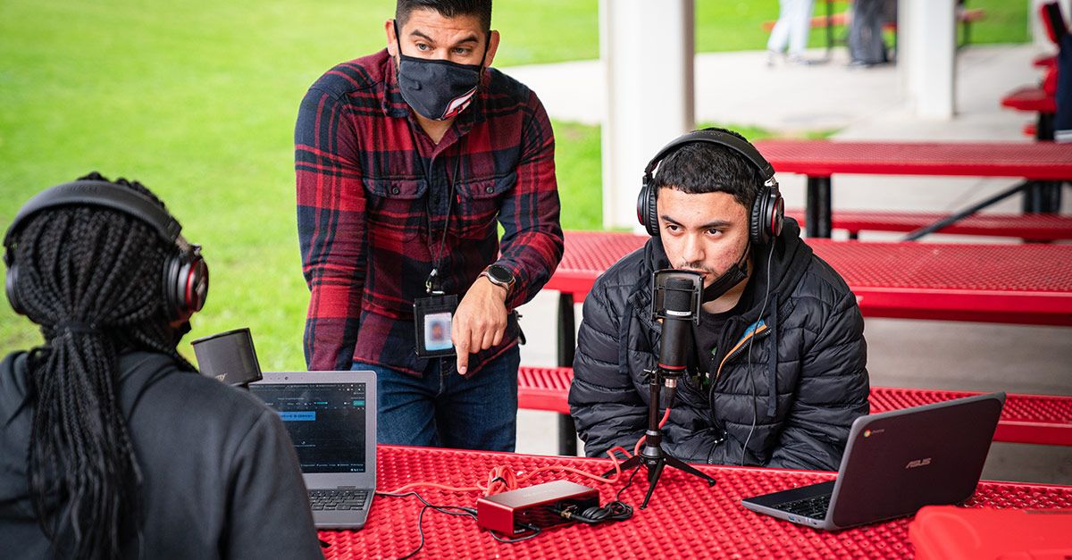 Maintaining the program's practical approach while broadening students' perspectives proved especially challenging during the pandemic. Attendance and engagement were the initial challenges. Rodriguez began by turning his home into an attractive and engaging YouTube studio. "Kids often have to put up with bad camera angles, poor lighting, and inferior audio. As a media teacher, I have to practice what I preach, so my setup had better be pristine. My online class looks like something on Twitch, so now students say, 'Hey, Rodriguez is doing his stream!'"