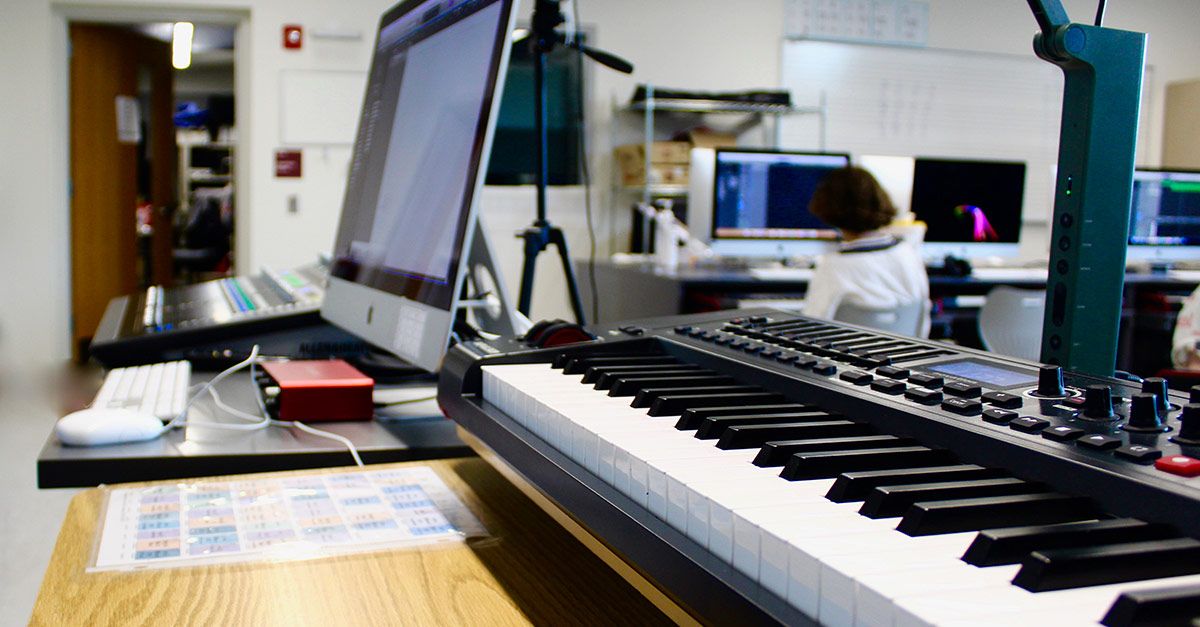 The school's recording studio allows students to learn live recording and sound reinforcement. It is outfitted with Avid Pro Tools and a lab with Novation MIDI keyboard controllers as well as a production room and isolation booth set up like a professional workspace.