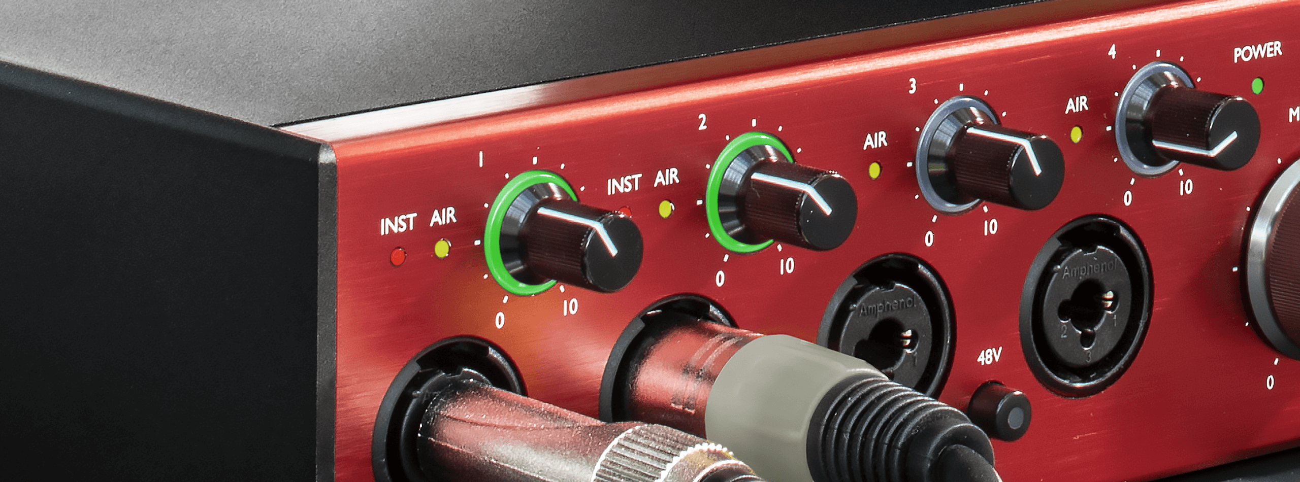 Air is simple to use — it’s just a single button press, either on the interface’s front panel or in Focusrite Control — so you can try it on literally any input to your preamp and A/B the treatment in an instant. Engage Air on your stereo drum overheads, add it to your vocal mic preamp or apply it to your room mics, to bring additional clarity and an ethereal high-frequency lift. The best part is that you don’t need to modify your settings or patch hardware, because its All-analogue circuitry is always there, in the box. Its simplicity helps you to keep sessions moving with minimum interruption and gives you options with minimum effort.