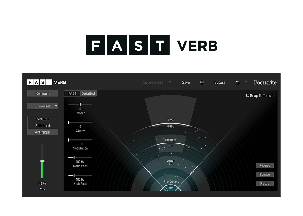 Effortlessly add depth to your voice and instruments with FAST Verb, making for a more natural sound, in a matter of seconds.
