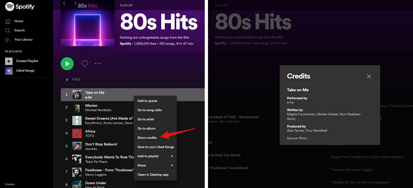 Ensure your digital distributor allows you to deliver full music metadata, lyrics and credits. Metadata is simply the data about a song - beyond just the song title - including who wrote the song, its release year, and the individual performers on it. Your song registration with your self-publishing firm does not pull the songwriter information across to your distributor, so this needs to be re-entered. Many streaming services make this metadata available for listeners to read. It’s important to familiarise yourself with what metadata is available to fans so you know what to deliver to your distributor. You can see examples of the metadata on individual songs on your favorite streaming services. Just right-click on a song to display the “Show Credits” feature and you can see what information is offered.