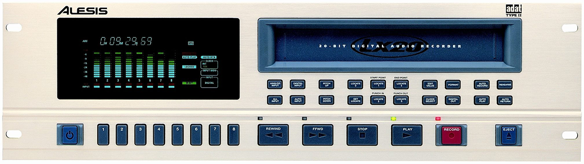 The ADAT (Alesis Digital Audio Tape) was an eight-track recording machine first introduced in 1992, which used consumer S-VHS (video cassette) tapes to store data. The first, rather quirky, ADAT recorders played a key role in wresting the levers of music power from major labels and commercial studios. At the time, multitrack digital recorders from Sony and Mitsubishi cost about the same price as a house, so the $3,995 eight-track ADAT democratised recording, and was the seed from which hundreds of musician-operated 'project studios' grew.