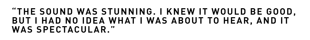 Among his important tools are a Focusrite RedNet MP8R eight-channel mic pre and A-D converter, a RedNet A16R 16-channel analogue I/O interface, three RedNet HD32R 32-channel HD Dante network bridges and a Red 8Pre 64-In / 64-Out Thunderbolt 2 and Pro Tools | HD audio interface. Other highlights include a Slate Raven console, a full complement of outboard gear, software and mics, including his prized Neumann U47 FET. Perhaps the most dazzling part is the first Atmos speaker system made up of ADAM components: three ADAM A77X near/midfield monitors, four ADAM A7X nearfield monitors, four ADAM A5X nearfield monitors and two ADAM SUB12 subwoofers.