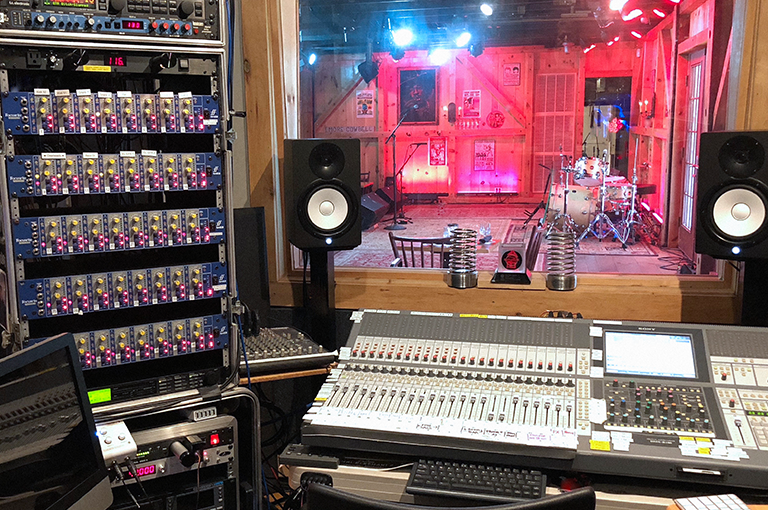 Moshay has a rack of six ISA 828 mic pres, providing up to 48 channels of classic Focusrite audio. As he built his collection, he found that not only did the ISA 828 provide the classic Focusrite sonic signature, but it also allowed him to minimize his equipment package, which was a huge help in the early years when the show was literally done from Hall's living room. “We had to break down after every show, so the 828 really helped make that a lot easier," he recalls. Since then, the ISA 828 has been the bedrock of the sound for both the show and the live venue, where Moshay records almost every performance. “What I especially like about the ISA 828 is that it works for every microphone there is," he says. “In addition, you can vary the impedance from 600 to 6,800 [ohms], which can dramatically change the sound the microphone, so there are so many subtle but important ways you can use it to shape the vocal sounds. It's gotten to the point where I don't have to spend time dialing in a microphone — the 828 has gain structure that is so predictable that I know what it's going to sound like before I even hear it, which is great when you get a last-minute addition to a show."