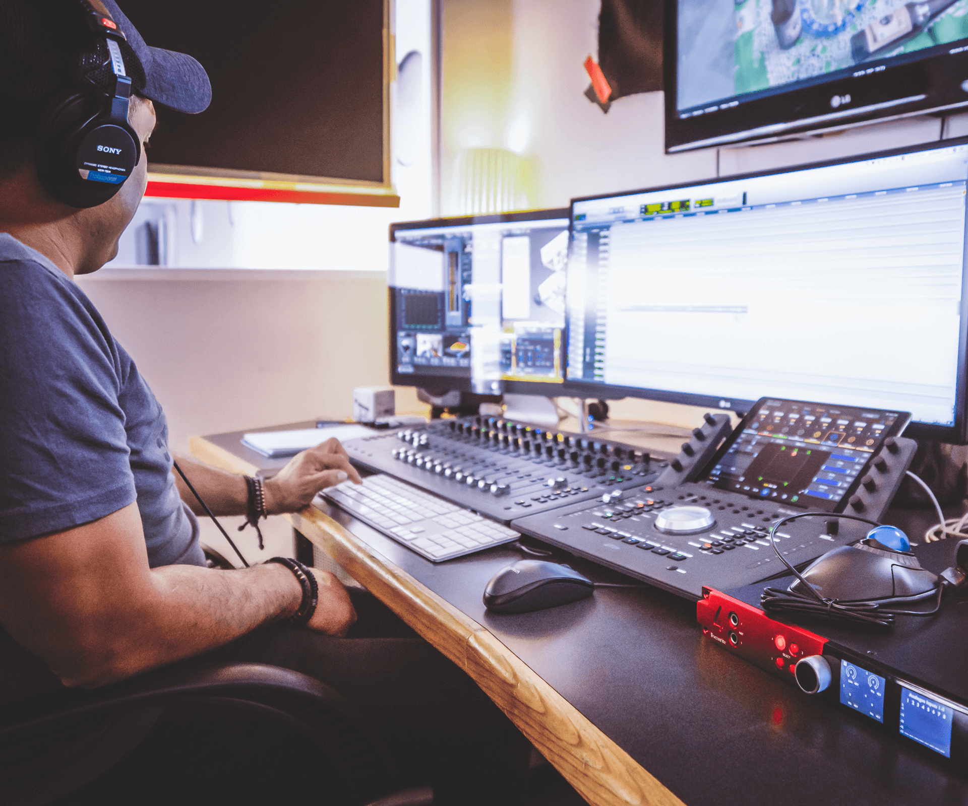 One of the post-production engineers at work at the new facility of Cinematic Media, located just north of Mexico City, employing Red and RedNet components from Focusrite.