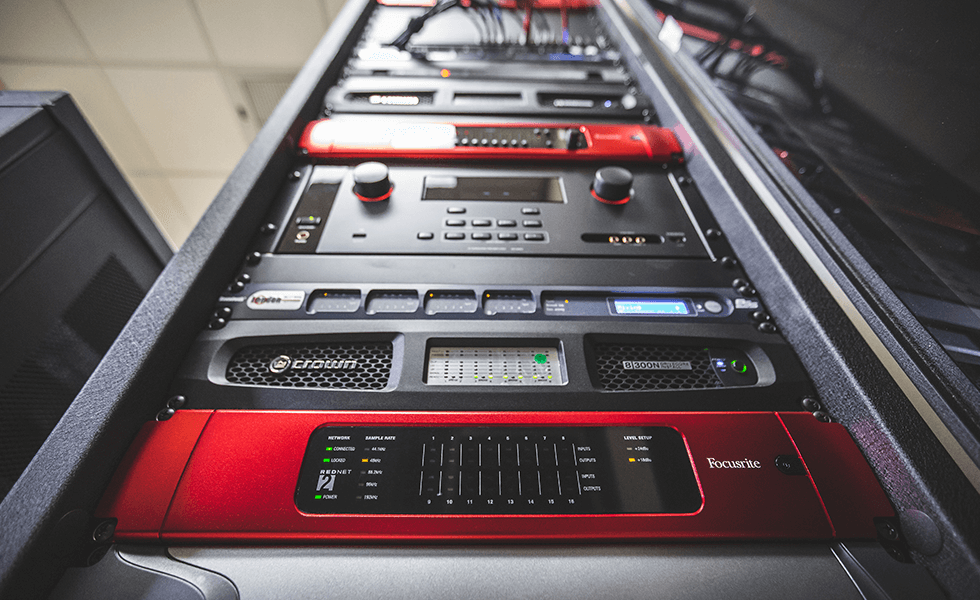 The Dante network's trouble-free setup process enabled Ron to quickly bring rooms online, even when the construction team were still working. “We asked the contractors to give us the keys to a room that was complete, and this became our temporary staging area for all the systems." From their staging post, Ron and his team were able to configure, test and troubleshoot the various equipment racks that would be deployed in different rooms, and prep them for installation in their respective locations as soon as they were signed off by the building contractors. In essence, they were able to set up the whole campus-wide system in one room, test it all working together, then deploy it across the building as soon as they got the opportunity. Dante Controller — the application that provides audio subscription control for all devices on the network — was critical to this phase, as was RedNet Control, free software for Mac and PC that lets you control all the RedNet devices throughout the network from anywhere else on the network.