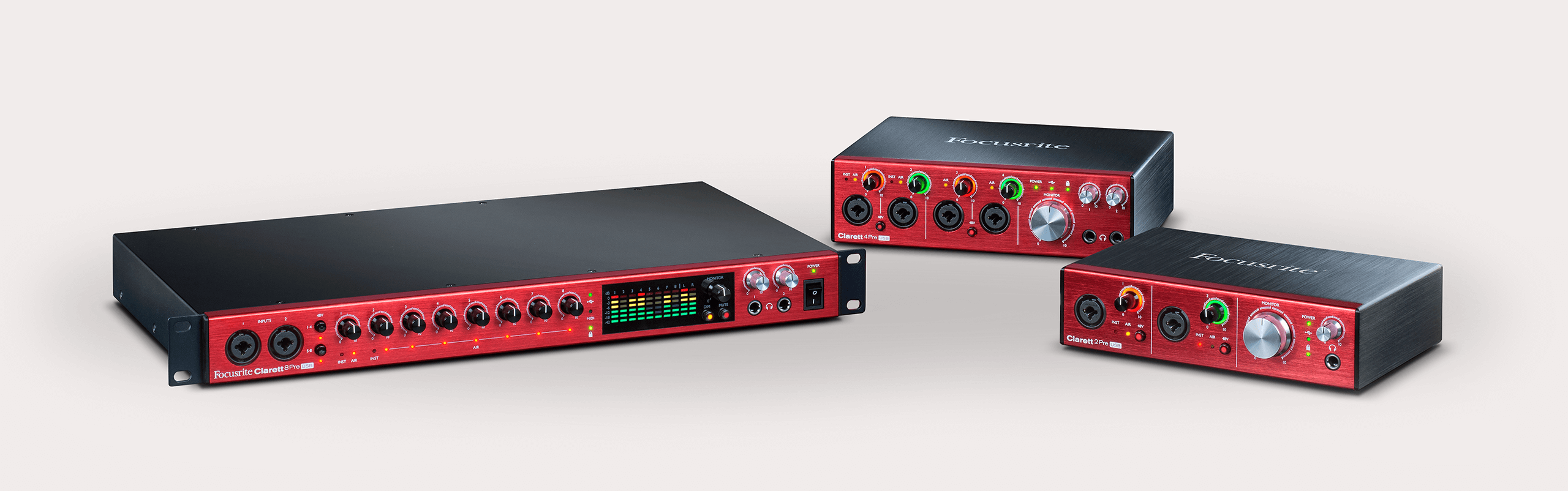 The most compact of the three interfaces, Clarett 2Pre USB provides two mic/line/instrument inputs, four line outputs, MIDI I/O and an ADAT input. Clarett 4Pre USB and Clarett 8Pre USB add mic/line inputs, S/PDIF I/O and two headphone outputs with volume controls. See the product pages for more features separating the range.