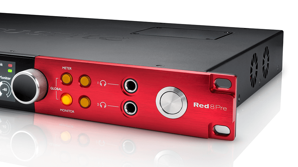 On Focusrite’s Red interfaces, a single high-precision rotary encoder offers control not only over the main monitor level, but also both headphone outputs too.