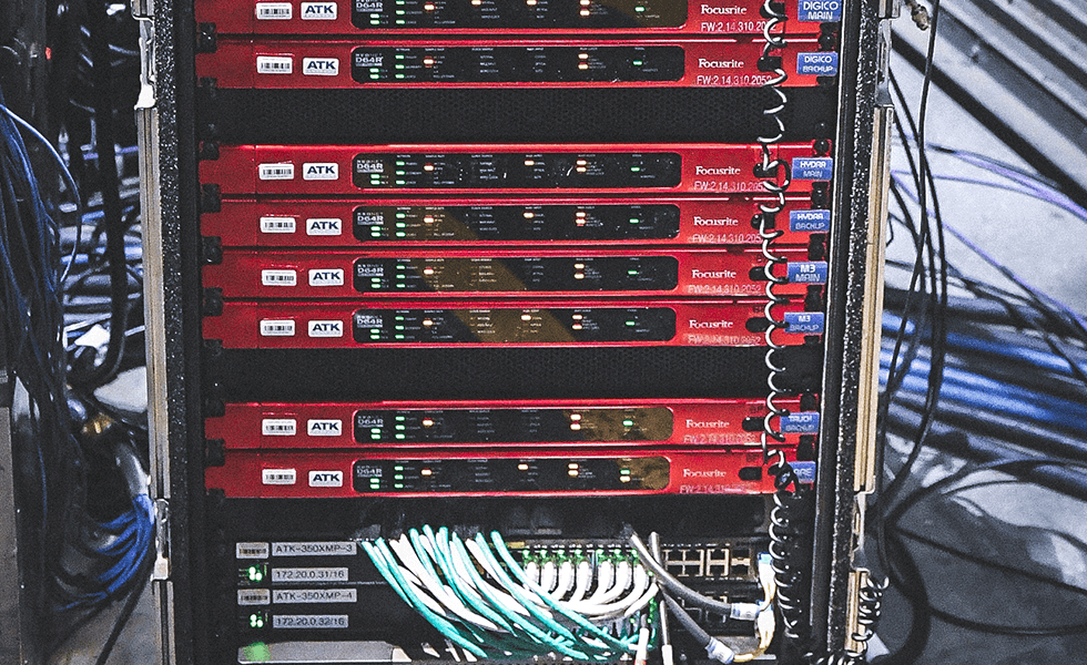 Focusrite RedNet D64R 64-channel MADI bridges, Focusrite RedNet D16R AES-to-Dante interfaces and RedNet MP8R eight-channel mic pres and A/D converters deliver the vocal performance and production wireless microphones to the house sound and broadcast audio mixing consoles.